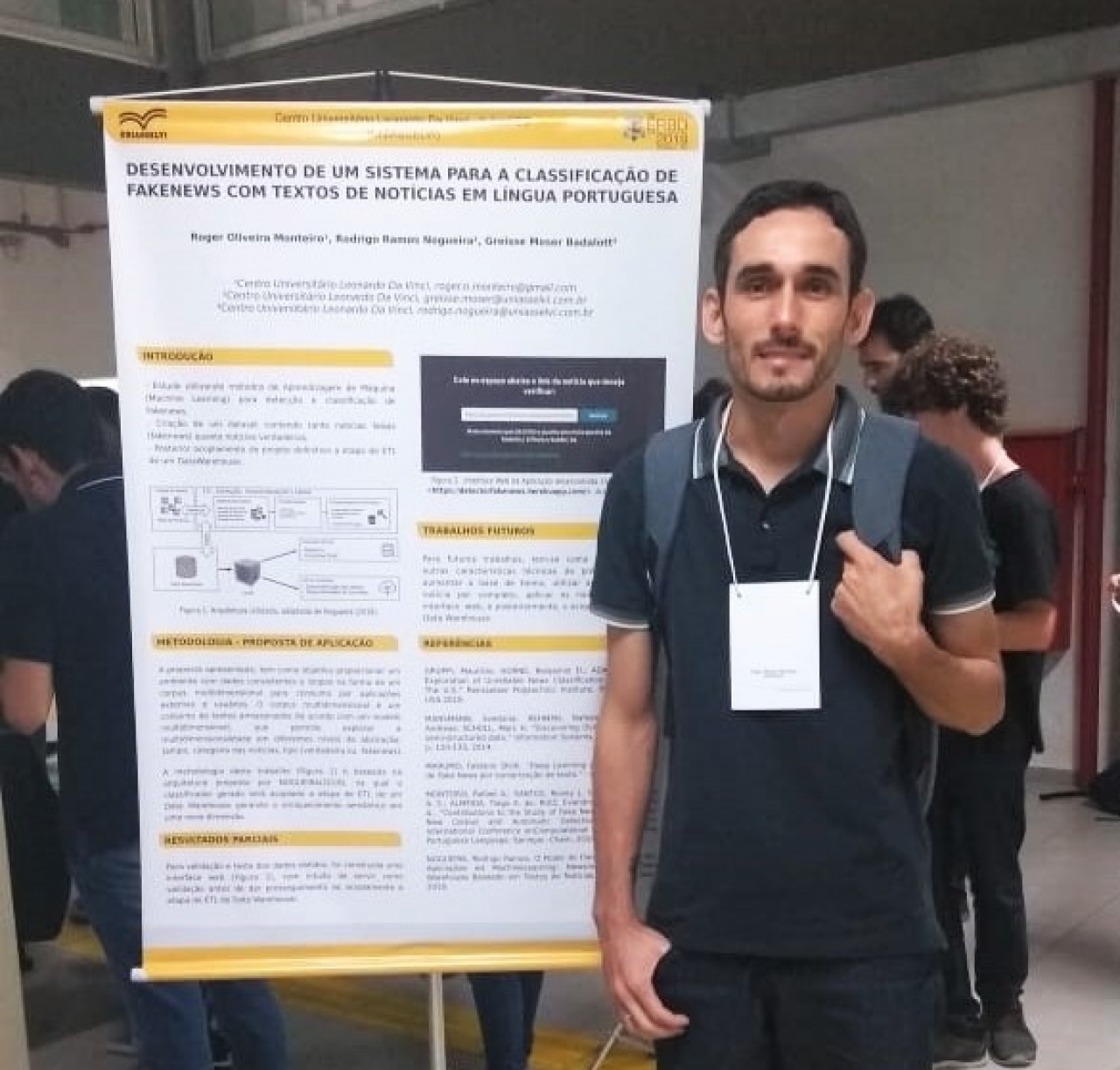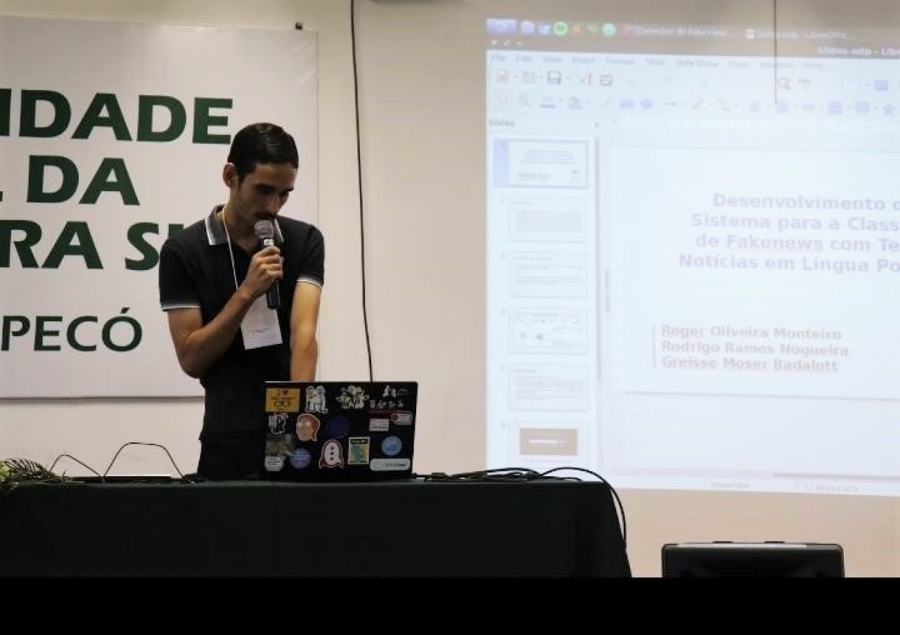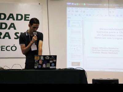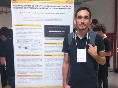 O acadêmico Roger Oliveira Monteiro, do curso de Análise e Desenvolvimento de Sistemas do Centro Universitário Leonardo Da Vinci - UNIASSELVI, apresentou um artigo sobre o desenvolvimento de um sistema para classificação de fake news, acoplado à etapa de ETL de um Data Warehouse de textos de notícias em Língua Portuguesa.