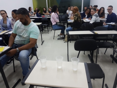 Para a introdução da disciplina de Metodologia Científica, a tutora Nathielli Nayara Pauleti aplicou um experimento científico de fácil realização para que os alunos conseguissem identificar as etapas de um projeto de pesquisa e execução de uma pesquisa científica.