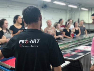 Na última quinta-feira (31), acadêmicos do 6º e 7º semestre do curso de Design-Moda da UNIASSELVI de Indaial realizaram uma visita técnica à Estamparia Pro Art Estampas Têxteis, localizada no município de Indaial, com o objetivo de conhecer diversas técnicas de estampas bem como suas aplicações nos tecidos e a importância de uma ficha técnica de estampa bem elaborada.