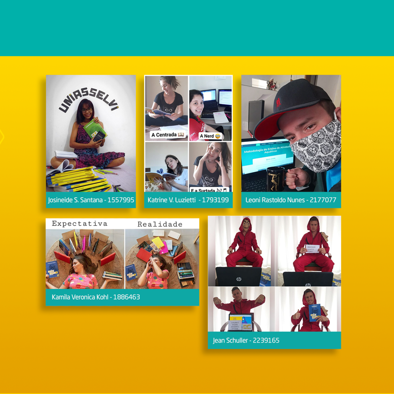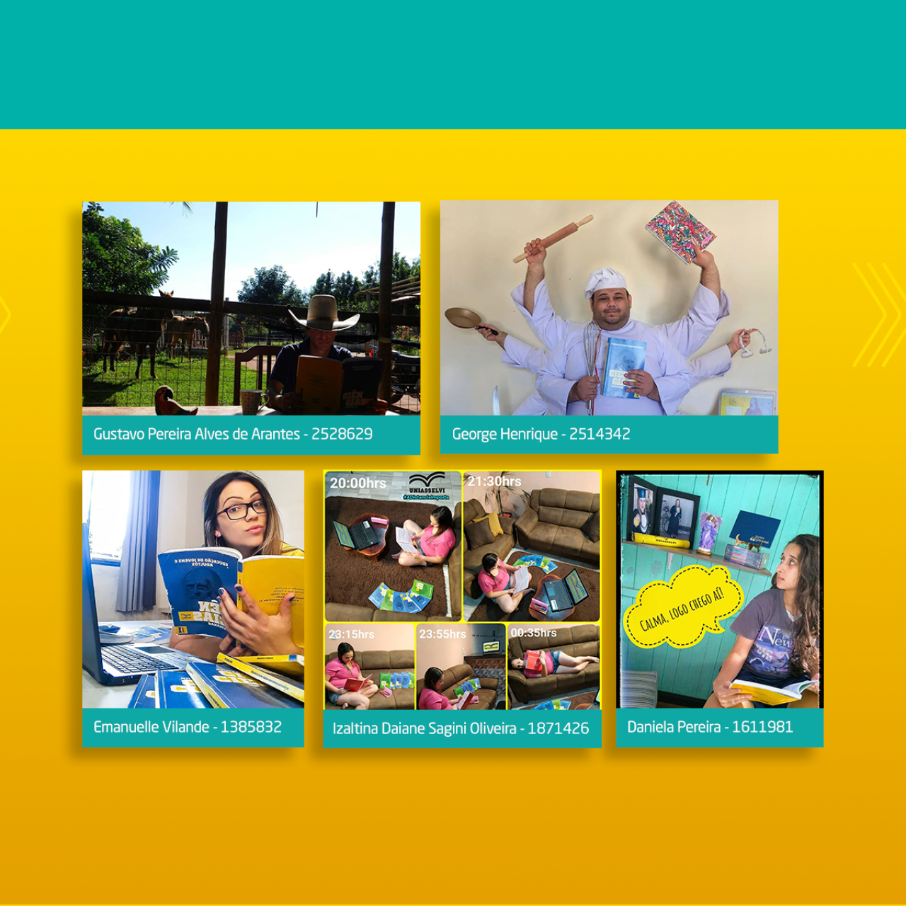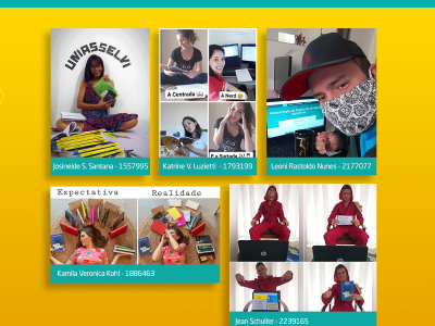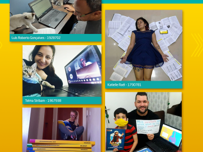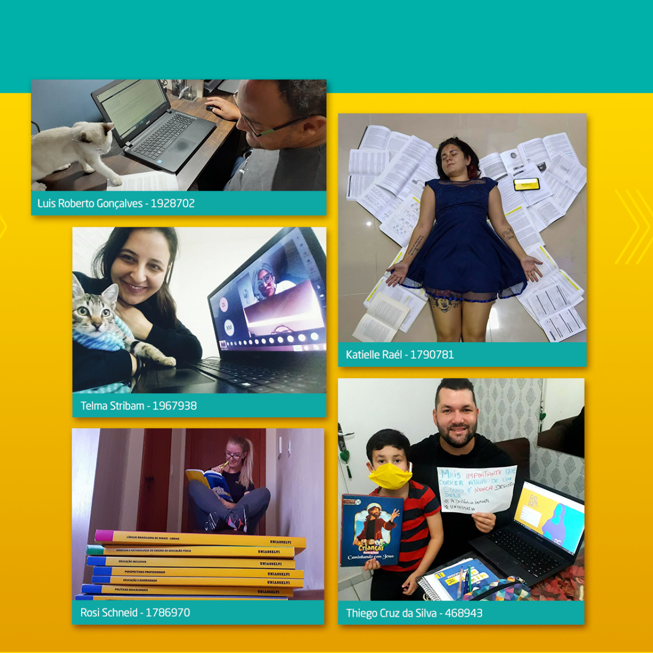 Foram publicadas mais de 300 fotos de alunos durante seus momentos de estudo em casa, nas mais diversas situações, estudando através do celular; com seus materiais didáticos; estudando com os filhos; com seus animais de estimação; realizando as aulas práticas em casa através dos laboratórios virtuais etc.