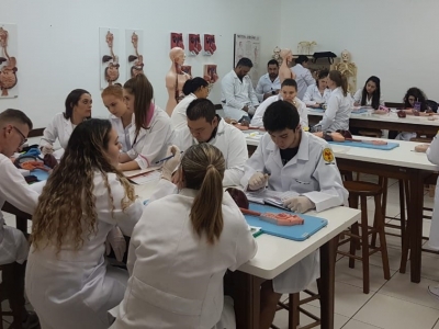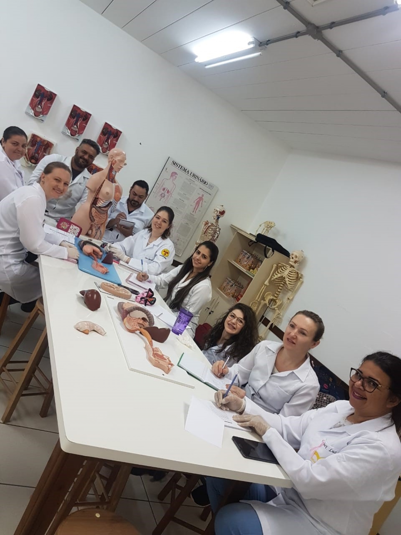 Na última sexta-feira (11), acadêmicos dos cursos EAD de Biomedicina e Radiologia da UNIASSELVI Polo Indaial – Vitória Régia realizaram mais uma aula prática envolvendo a disciplina de Anatomorfofisiologia do Sistema Digestório, Endócrino, Urinário e Reprodutor, acompanhados pela tutora Nathielli Nayara Pauleti.