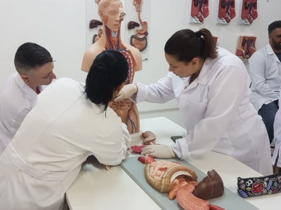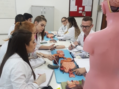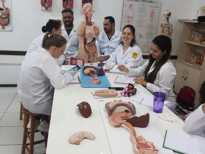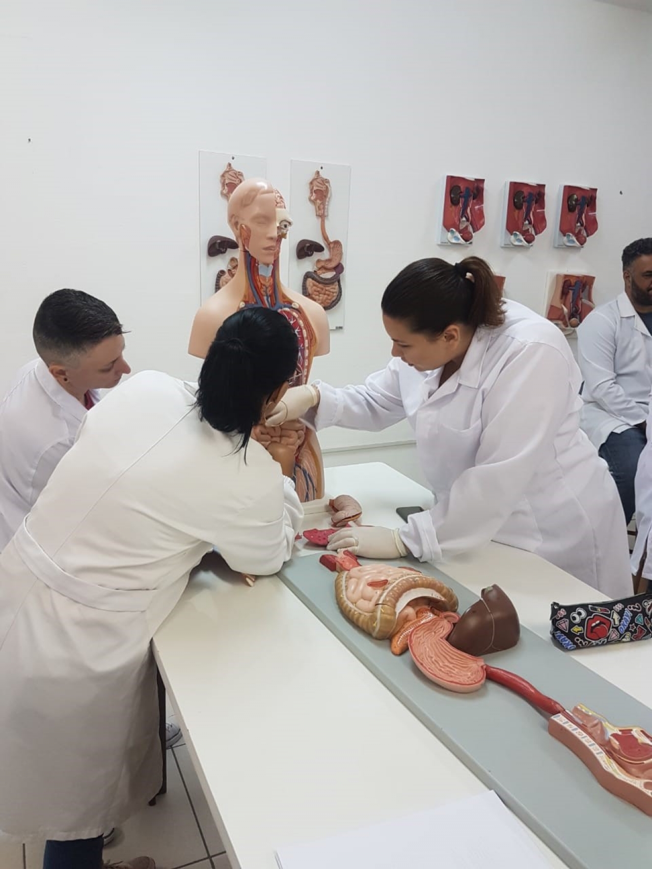 Alunos de Biomedicina e Radiologia realizam prática sobre o Sistema Digestório