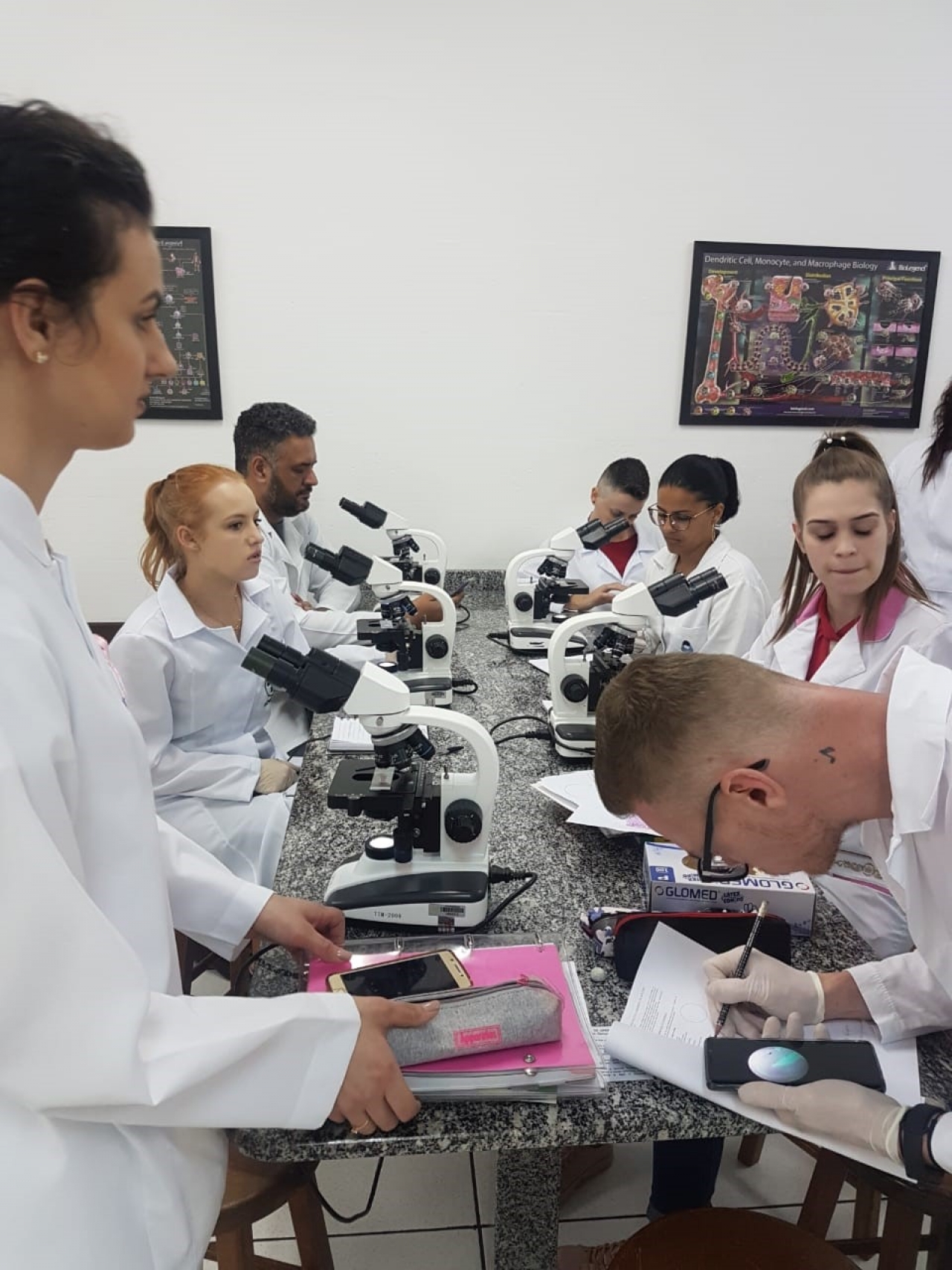 A prática realizada pelos acadêmicos contemplou as aulas 2 e 3 do Manual de Práticas: Observação do Sistema Digestório – Macroscopia e Observação do Sistema Digestório – Microscopia, respectivamente. Para isso, a aula prática foi dividida em dois momentos: identificação das estruturas nas peças anatômicas e, em seguida, identificação dos órgãos nas lâminas histológicas.