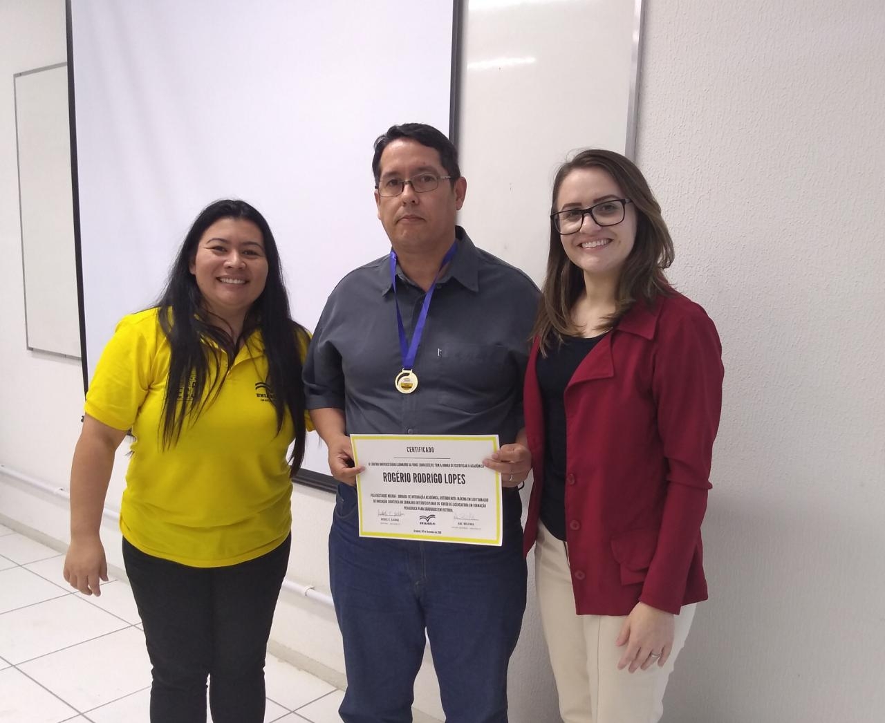 Na última semana, a UNIASSELVI Polo Araquari teve a honra de certificar o acadêmico Rogério Rodrigues Lopes por seu destaque na Jornada de Integração Acadêmica – JOIA 2019. Rogério obteve nota máxima em seu trabalho científico interdisciplinar e cursa, atualmente, Licenciatura em Formação Pedagógica para Graduados em História.