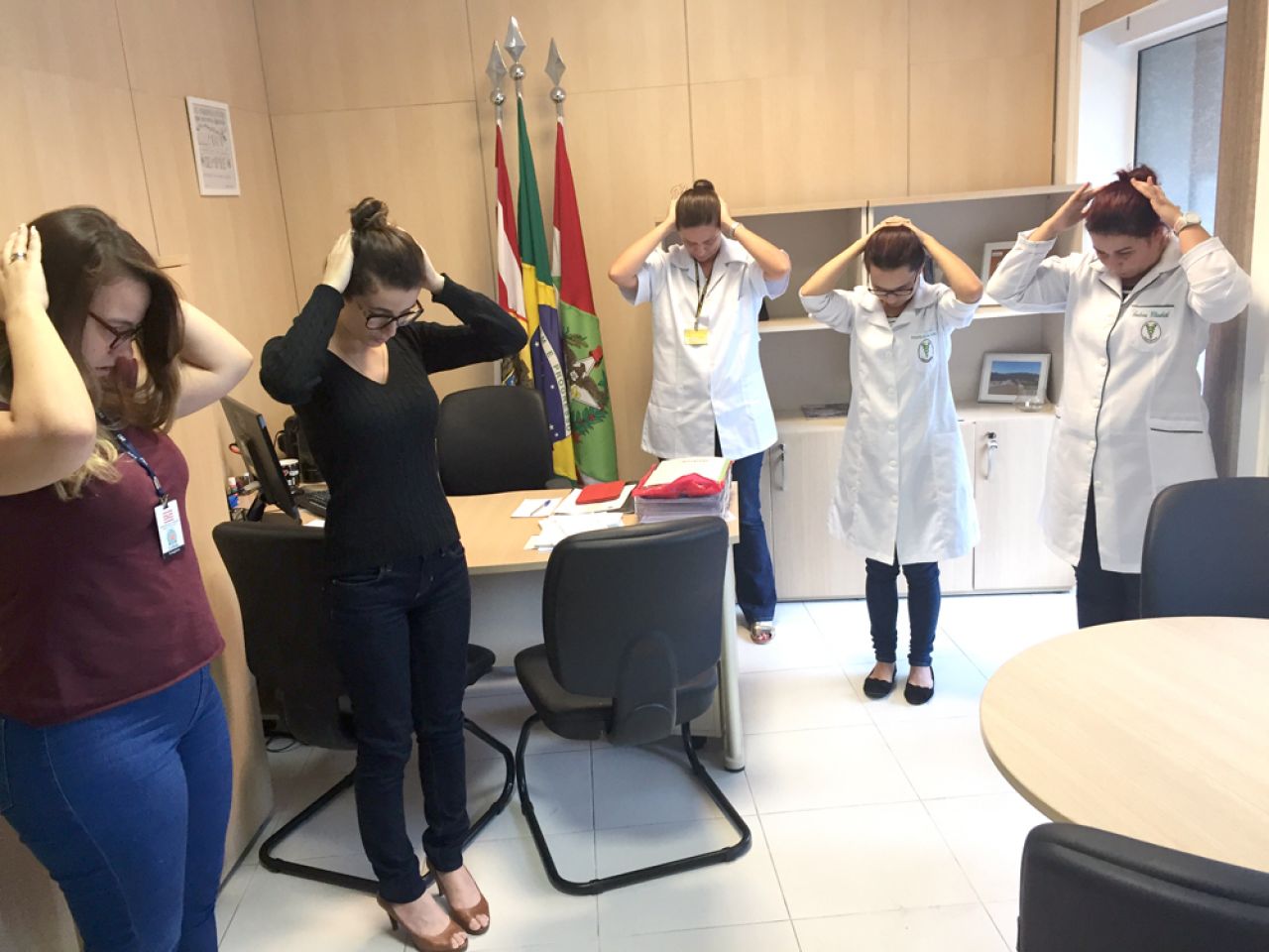 A Escola do Legislativo Fritz Müller, em parceria com a UNIASSELVI de Blumenau, promoveu na segunda-feira (3/4) uma atividade de ginástica laboral para servidores da Câmara de Vereadores Municipal de Blumenau. De acordo com Patrícia Lopes, assessora da Escola do Legislativo, conta que o objetivo do projeto é prevenir doenças no trabalho.