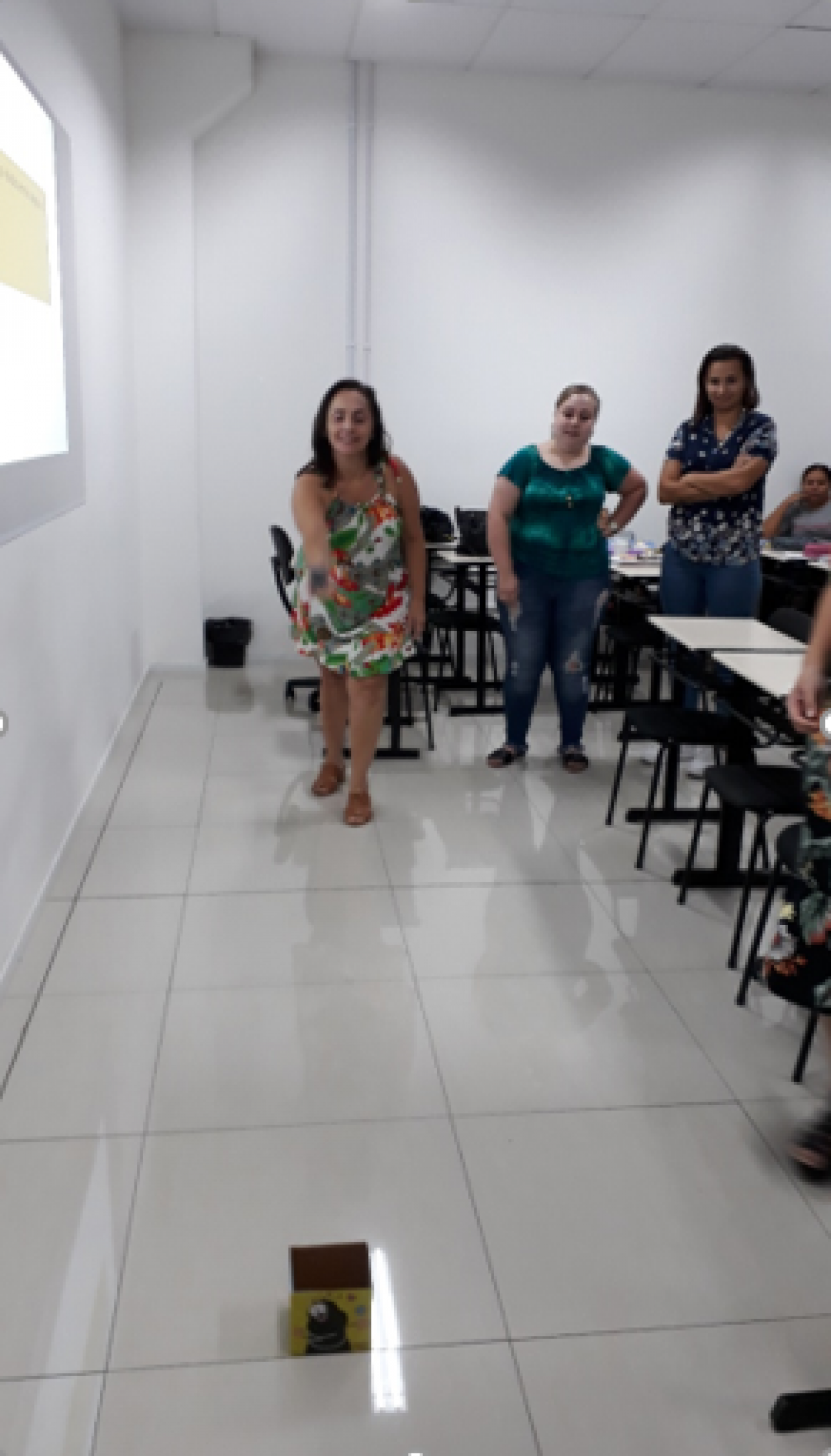 Os acadêmicos ainda colocaram em prática jogos e brincadeiras aprendidos na disciplina. O objetivo foi apresentar de forma “lúdica” as 3 categorias de jogos segundo PIAGET.