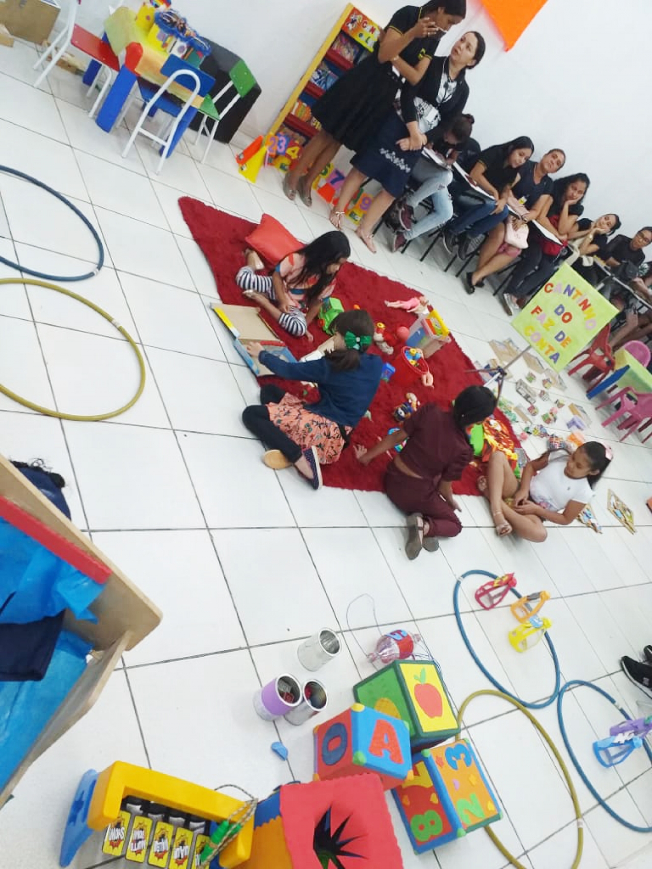 A atividade, que envolvia a Brinquedoteca, tinha como objetivo avaliar a condução das atividades pelos acadêmicos de modo que despertassem nas crianças a percepção e o respeito em relação às pessoas com alguma necessidade especial, que certamente encontrarão em suas trajetórias. A atividade foi desenvolvida no contexto da ‘ludicidade’: através do ‘brincar’, a criança desenvolve autonomia, identidade e estimula a criatividade.