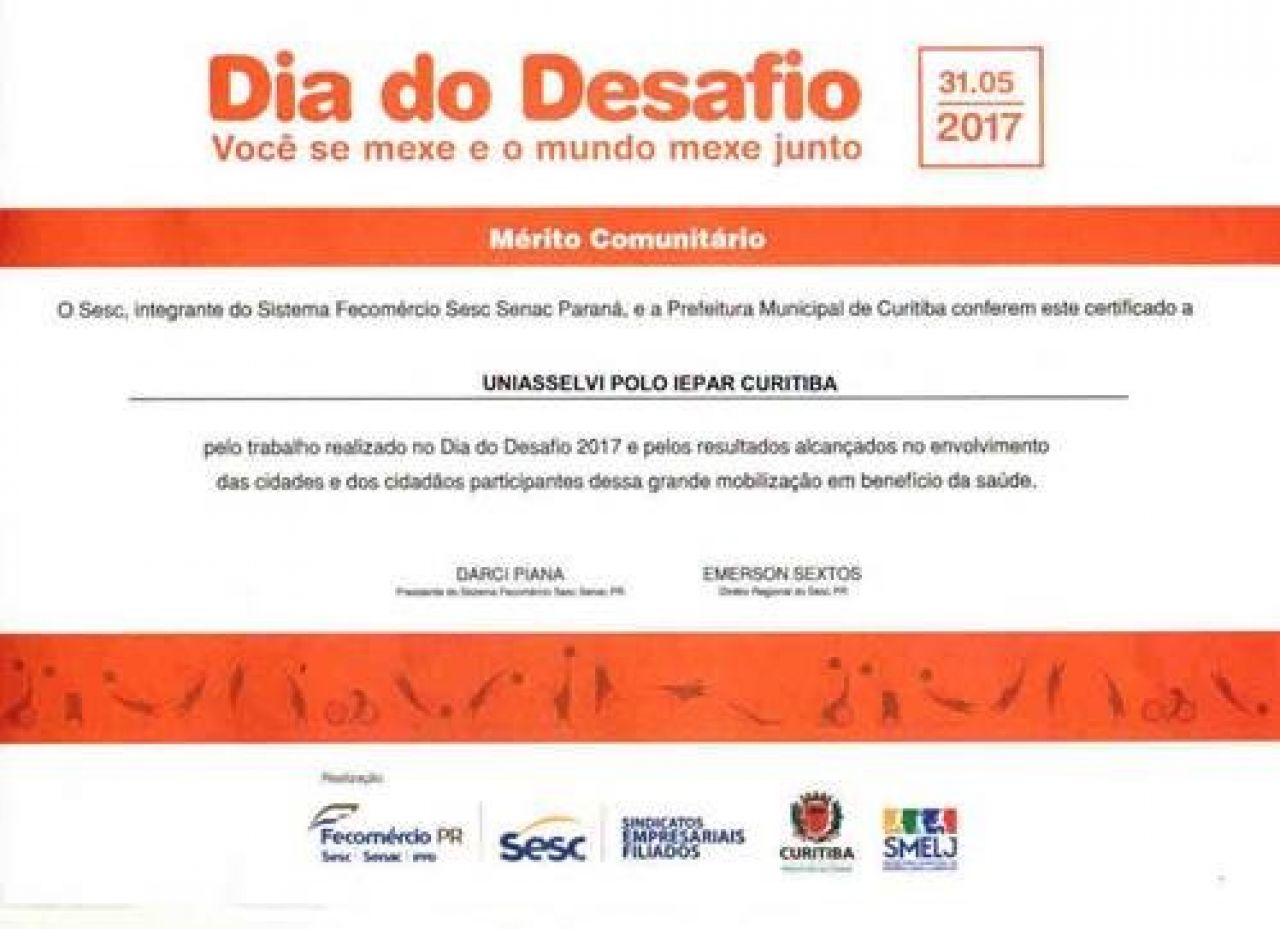 Na última quarta-feira (31/5), o Polo UNIASSELVI em Curitiba participou do Dia do Desafio. O objetivo do evento é interromper as atividades rotineiras para praticar, por pelo menos 15 minutos consecutivos, qualquer tipo de atividade física.