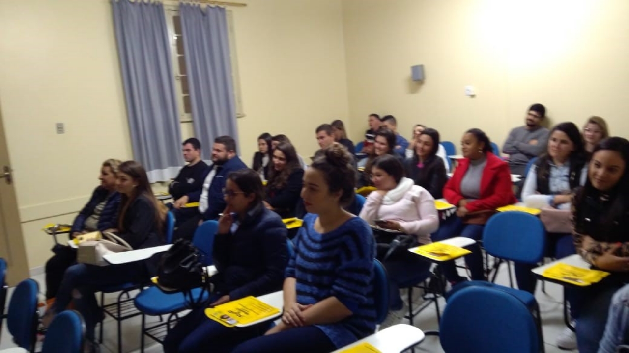 A acadêmica do curso de Pedagogia, Luana Muniz, conversou com os calouros e explicou como organiza seu tempo de estudo, como são desenvolvidas as atividades em sala de aula e os benefícios que a UNIASSELVI trouxe para o município, oportunizando o ensino superior para o crescimento pessoal e profissional da comunidade.