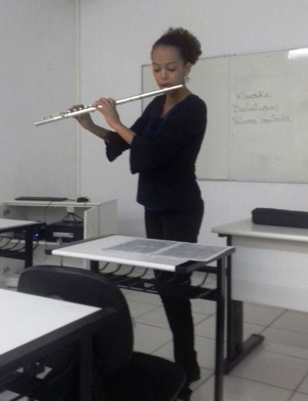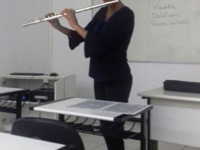 Durante o encontro, Silvia trocou experiências com a turma e apresentou possibilidades de trabalho com a música na educação básica, apresentando um mini recital de flauta transversal. Considerando a importância da temática, a troca de experiências foi significativa na construção de concepções acerca do trabalho pedagógico com a música.