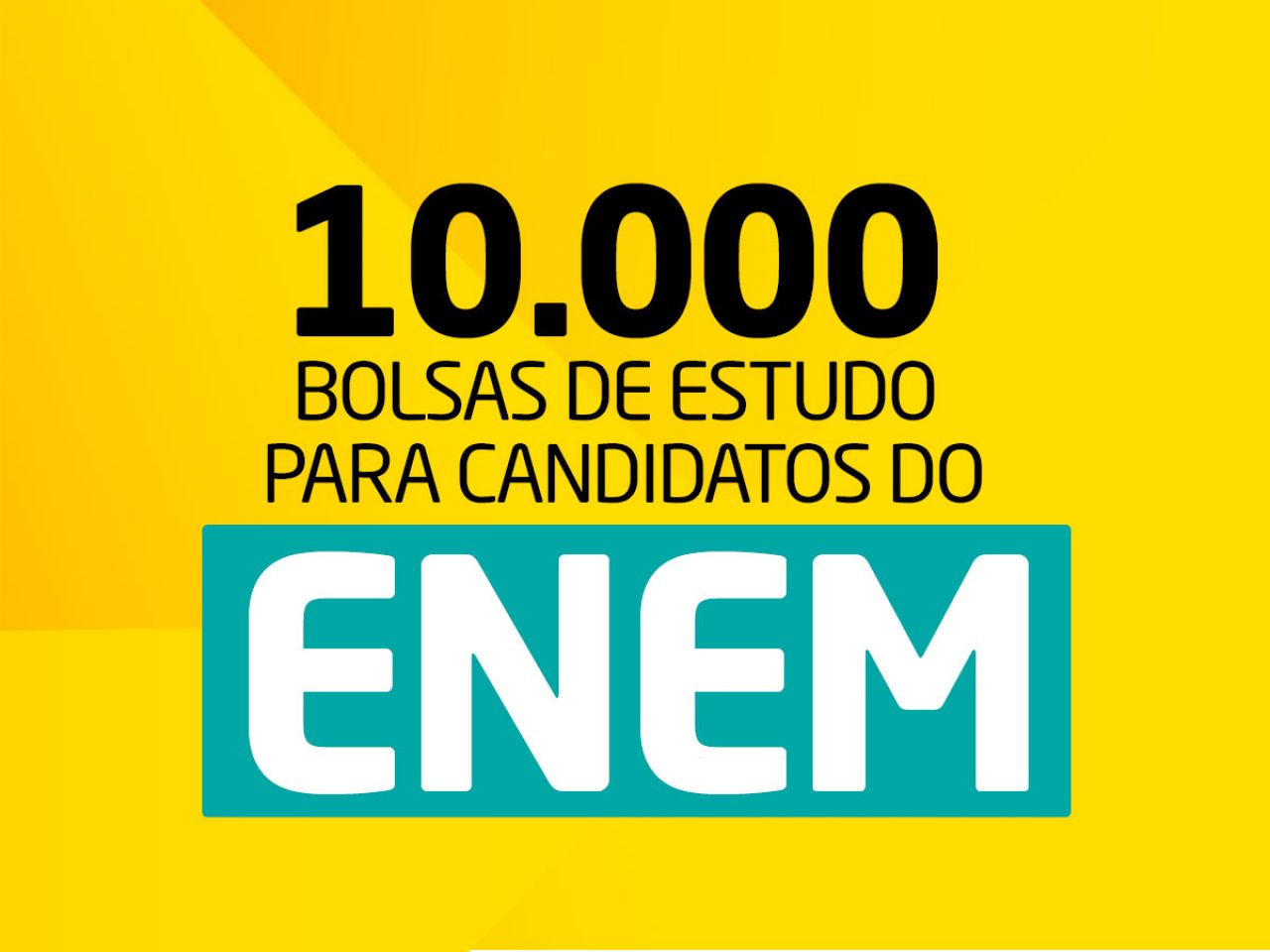 Serão 10.000 bolsas de estudo de 20 a 100% que serão distribuídas conforme performance do candidato no Exame Nacional de Ensino Médio