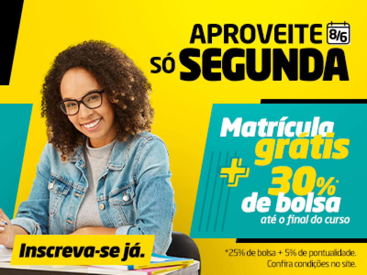 Na segunda-feira, 8 de junho, matrículas para próximo semestre terão bolsas a partir de 30%