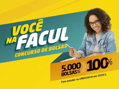 O concurso de bolsas ‘Você na Facul’, da UNIASSELVI, ofertará 5.000 bolsas de estudo para cursos de graduação presenciais ou a distância, em todos os estados brasileiros. São mais de 500 polos em todo o Brasil e mais de 100 opções de cursos.