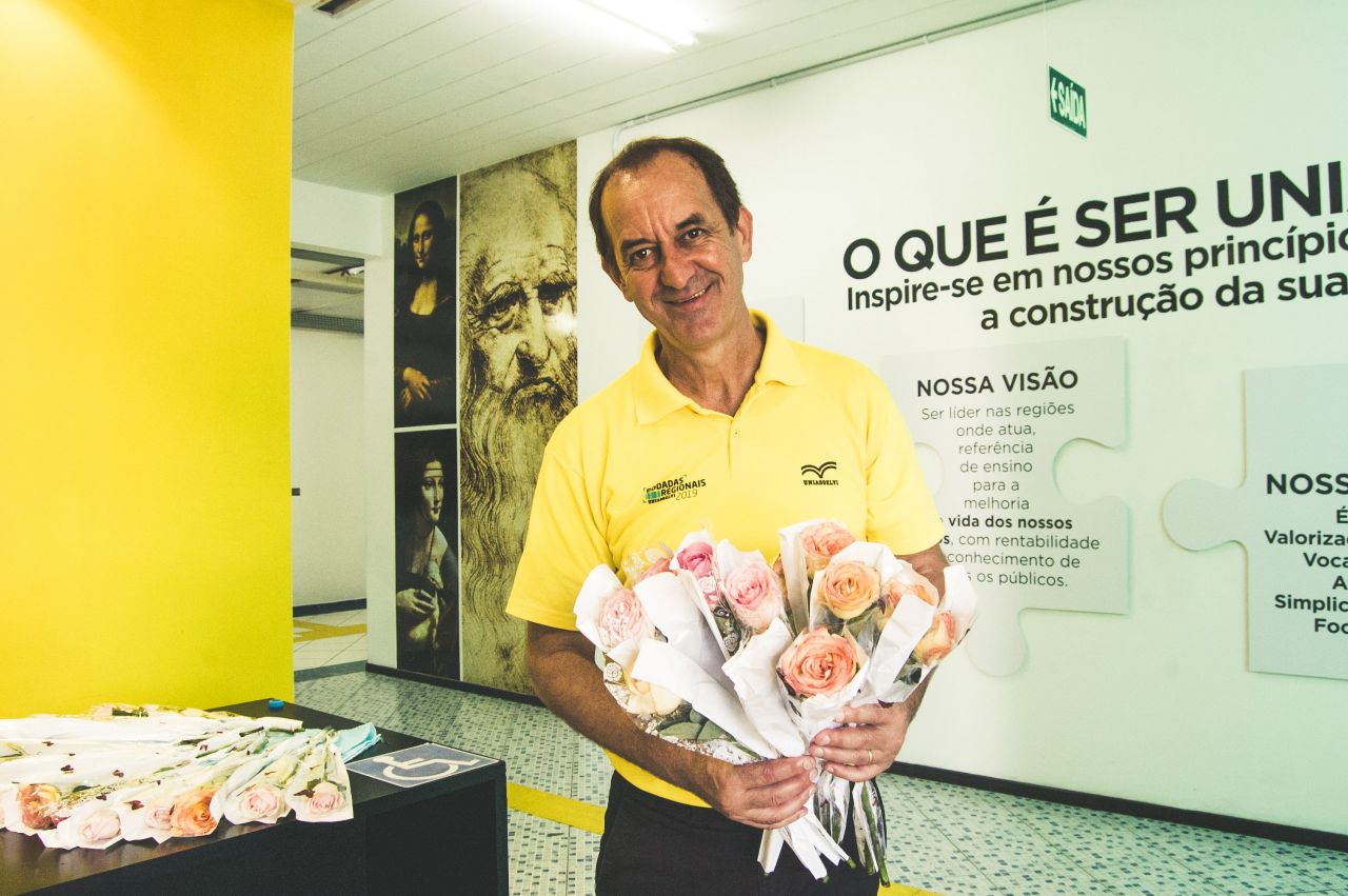 No dia 8 de março, data de grande significado, as colaboradoras foram recebidas pelo Reitor da UNIASSELVI, Prof. Hermínio Kloch, que as homenageou com flores e uma recepção calorosa.