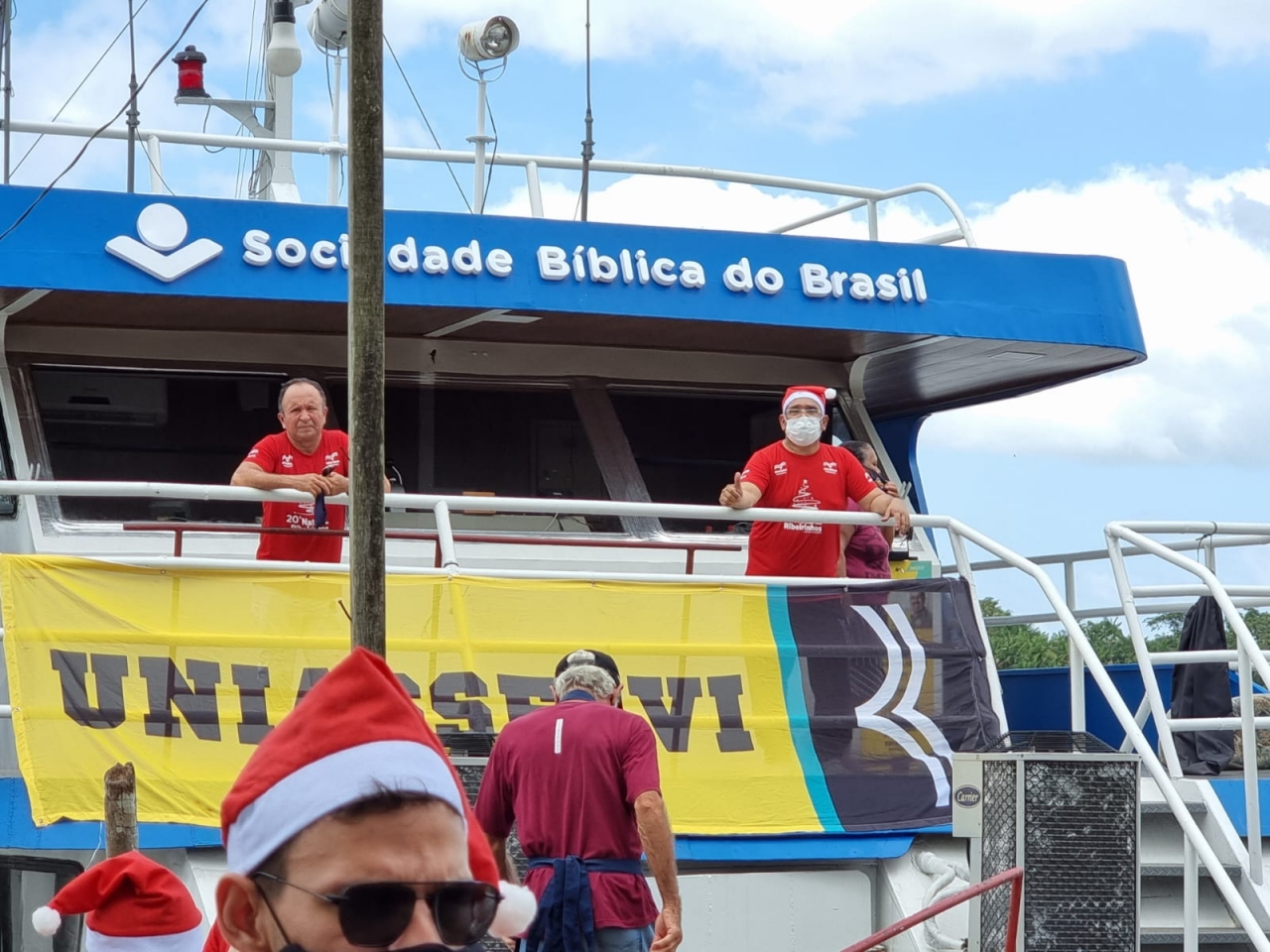 Há três anos a rede de polos UNIASSELVI EAD Pará apoia o projeto Natal dos Ribeirinhos. No último mês, a comunidade Carmelo, na cidade de Barcarena (PA) recebeu a visita da Universidade junto com a Sociedade Bíblica do Brasil para a entrega de centenas de roupas, calçados, 150 cestas básicas, materiais escolares e brinquedos para 170 crianças.