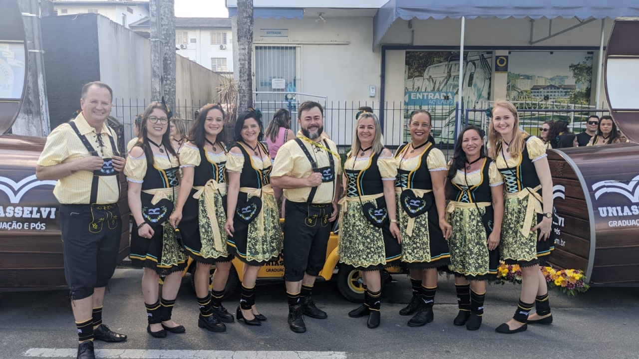 Como já é costume há 13 anos, a UNIASSELVI marcou presença no desfile oficial da Oktoberfest, em Blumenau (SC). A participação no último domingo (23), teve a cobertura do influenciador digital Gustavo Pórco, do perfil Inda Vírus.