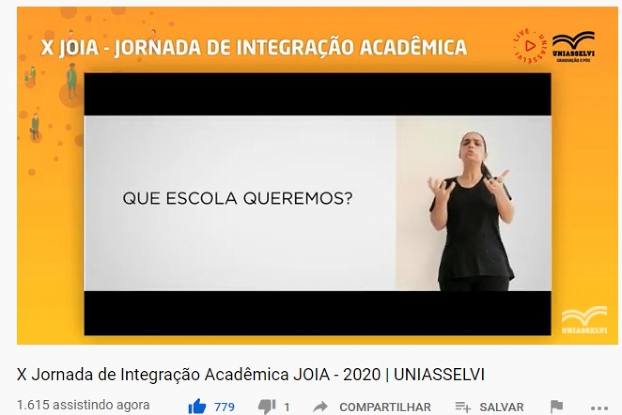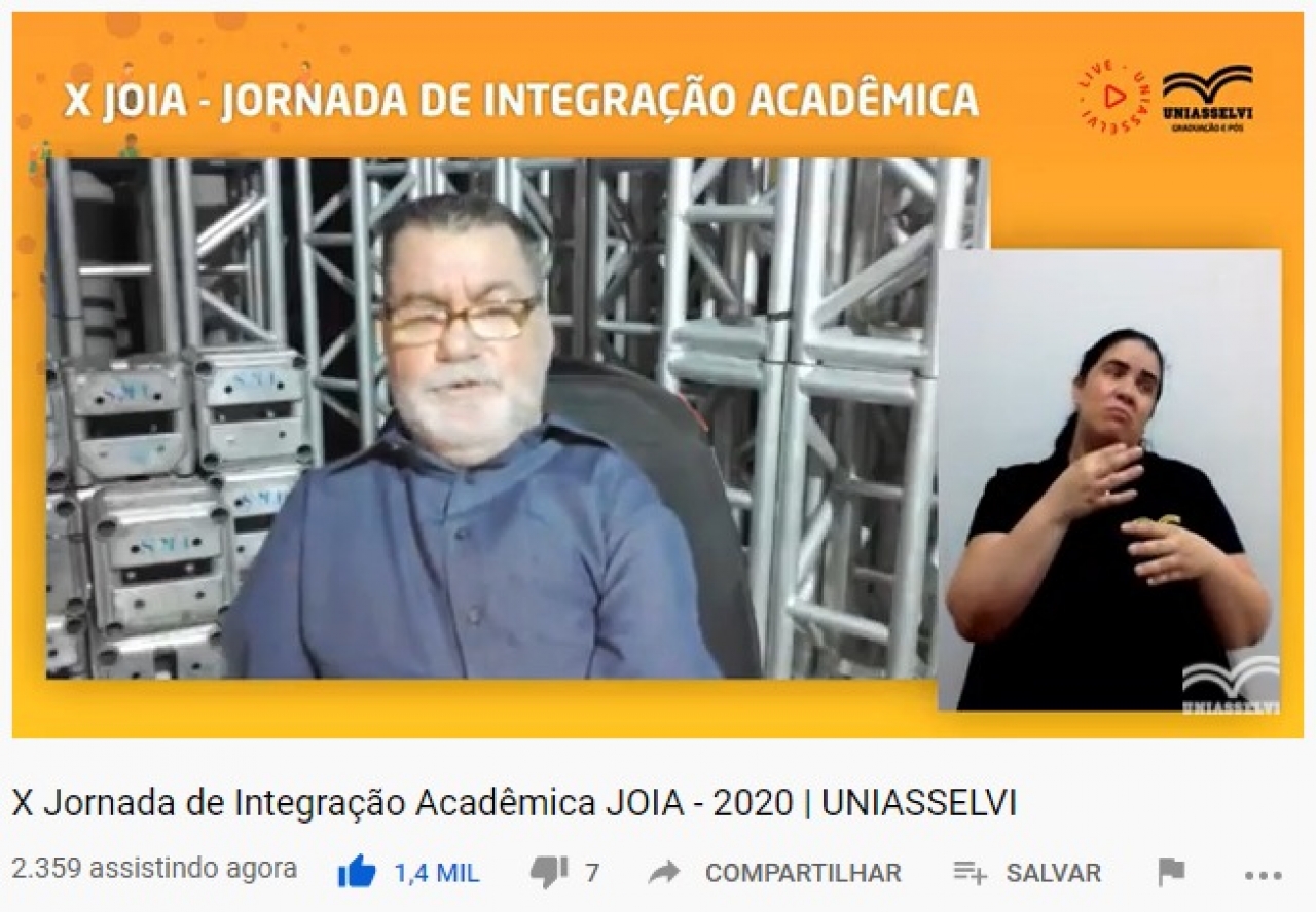 No dia 9 de setembro, a partir de transmissão realizada no canal da UNIASSELVI no Youtube, ocorreu a solenidade de abertura da X Jornada de Integração Acadêmica – JOIA.