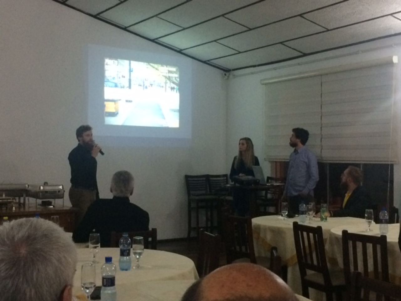 Na última quinta-feira (19), a convite do Rotary Club de Indaial, os acadêmicos do 10º semestre do curso de Arquitetura e Urbanismo da UNIASSELVI Timbó – Gustavo de Oliveira Sansão, Nelson Voltolini Junior e Rayane Redivo – apresentaram o “Projeto Calçadão Indaiá”, que traz uma proposta de revitalização com mobilidade saudável, ciclovias e espaços de convivência para a Rua Lauro Müller, localizada no centro do município de Indaial/SC.