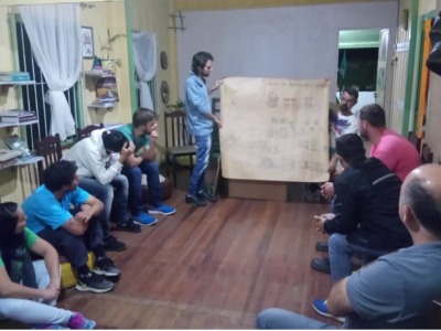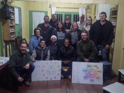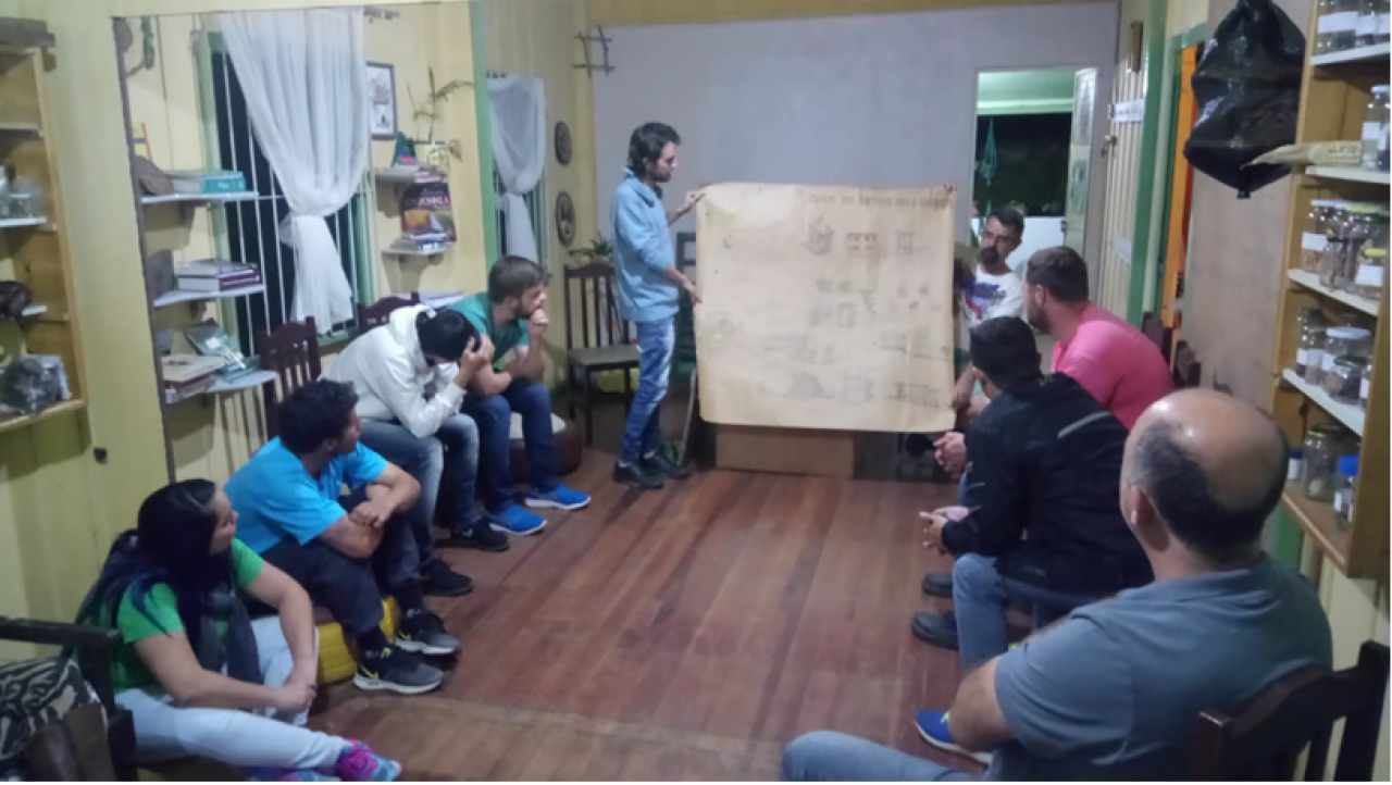 Ao final da trilha, todos reuniram-se em um sistema de círculo para falar sobre a permacultura, entendendo suas práticas, a interação com a sociedade e o meio ambiente. Os alunos puderam, ainda, conhecer os projetos de bioconstrução do instituto.