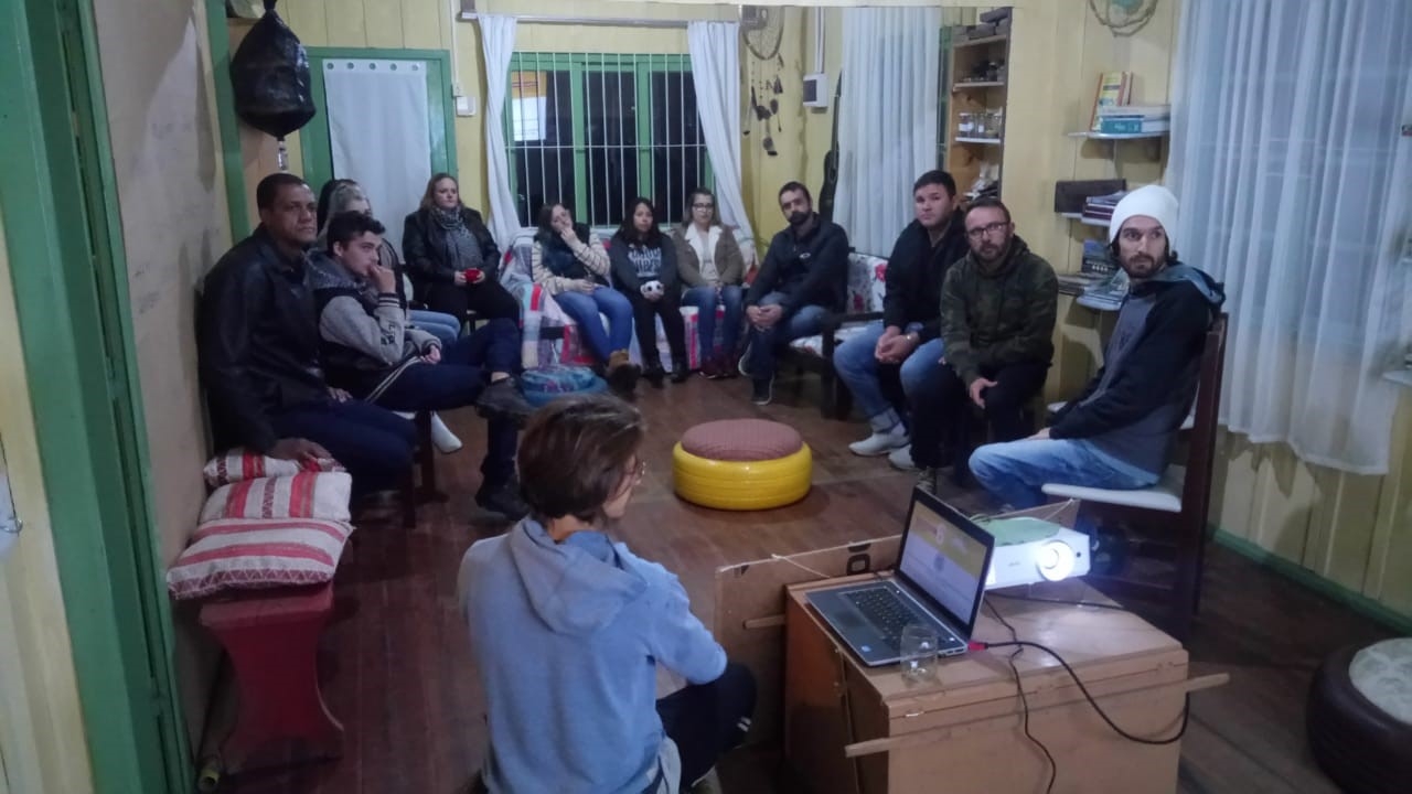 Tutor e alunos foram recepcionados por dois integrantes, Virgílio e Carlos, na sede do Instituto, localizada na Rua Heinrich Hemmer, nº 1070, no Bairro Badenfurt em Blumenau/SC. A oficina iniciou com uma trilha de 400 metros nas imediações do instituto, a fim de que eles pudessem conhecer e sentir um pouco da presença da floresta, fauna e flora em ambiente noturno.