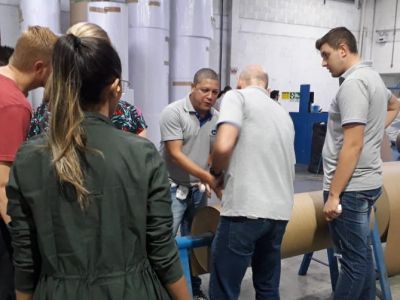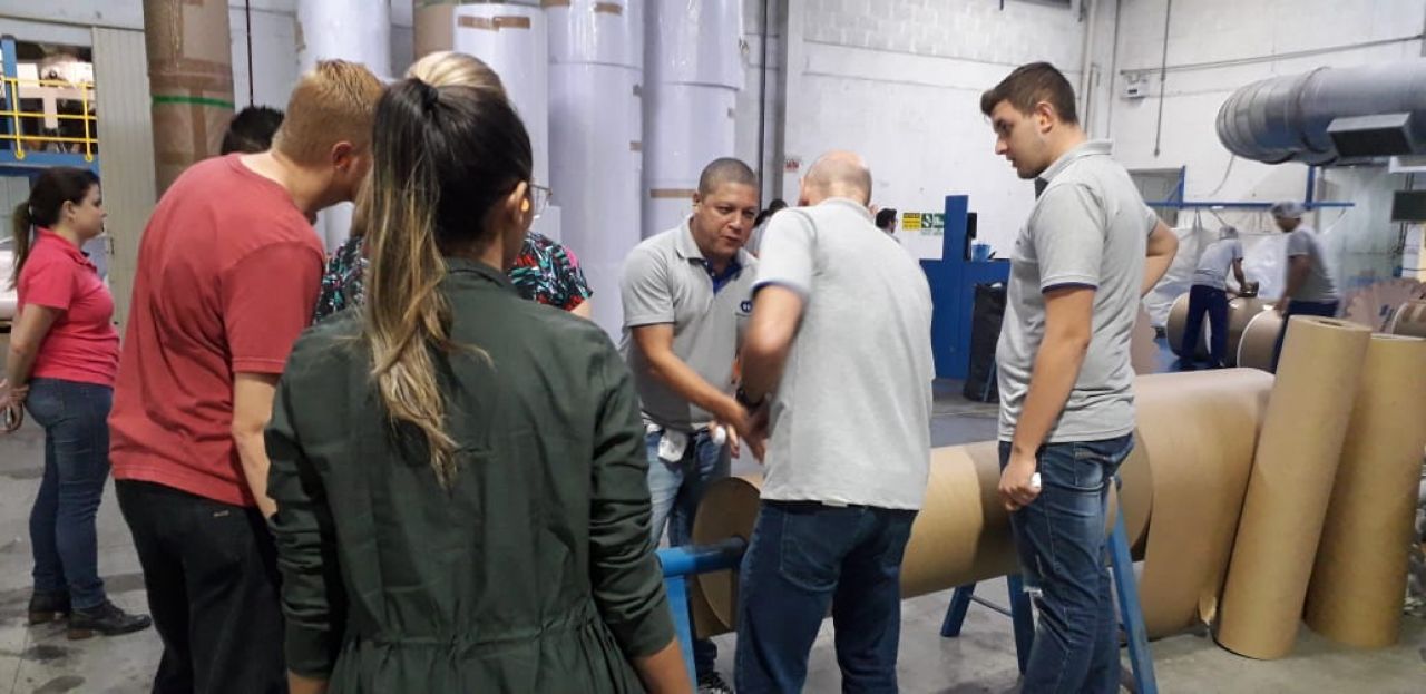 No primeiro momento, os gestores das áreas de TI, de Produção e de Gestão de Pessoas reuniram os acadêmicos no centro de treinamento e fizeram a apresentação da empresa e explanaram sobre a sua missão e valores, seus produtos e processos e sobre a importância de seus colaboradores. A partir disso, foi realizada uma visita à planta para conhecer o processo de produção dos papéis, de controle de qualidade e de desenvolvimento de produto.