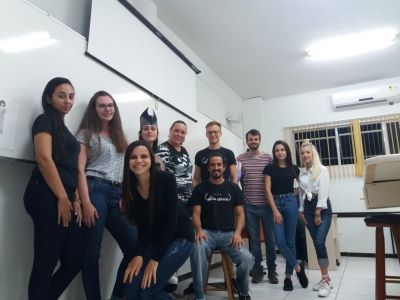 Na noite de 25 de fevereiro, os acadêmicos da 5ª fase do curso de Design da UNIASSELVI de Rio do Sul receberam o ator Samuel Paes de Luna juntamente com o ator Thiago Becker e a produtora Ana Cristina Gaebler do grupo de teatro Cobaia Cênica. O encontro teve por objetivo explanar sobre a produção que o Cobaia vem tecendo e buscar, através da sensibilidade, da arte representada nos palcos, parceria com o curso para o desenvolvimento do figurino do espetáculo. Na próxima semana, as acadêmicas da 5ª fase poderão experienciar um ensaio da peça, exclusivo para o curso de Design, como parte de laboratório para a imersão na criatividade para o desenvolvimento do figurino dos atores, considerando aspectos como ergonomia, modelagem, materiais e tecnologia têxtil.