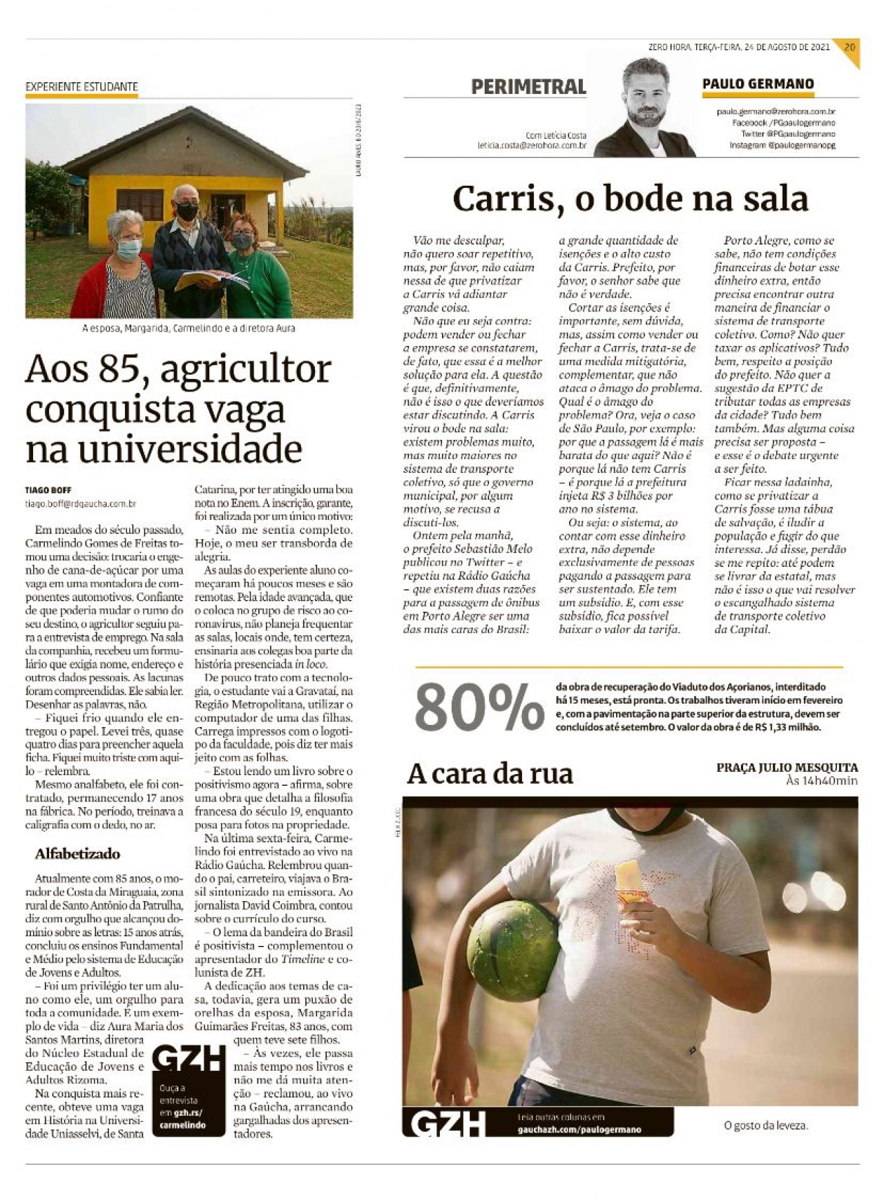 O agricultor Carmelindo Gomes de Freitas, 85 anos, é um exemplo de superação que teve a sua história contada por diferentes veículos de comunicação. Ele conquistou a matrícula no curso de História por meio da nota no Exame Nacional de Ensino Médio (Enem). O acadêmico estuda no polo de Santo Antônio da Patrulha, localizado no Litoral Norte do Rio Grande do Sul (RS).