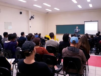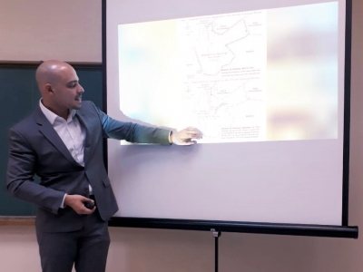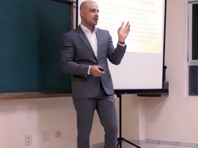 André discorreu sobre os aspectos históricos, geográficos e geopolíticos do Oriente Médio, indicando as causas dos conflitos Árabes-Israelenses. Também apresentou dados e ações da ONU – Organização das Nações Unidas em prol da paz na região.