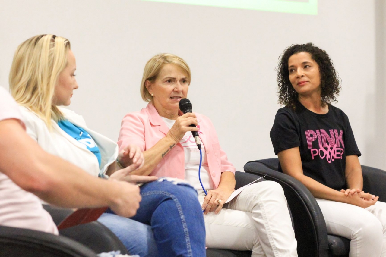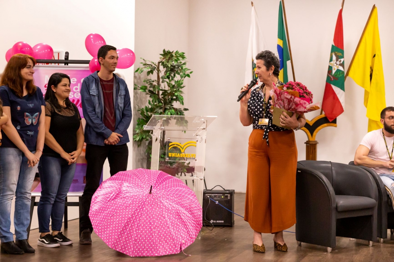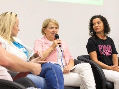 No dia 23 de outubro, os acadêmicos de Publicidade promoveram uma Mesa Redonda, no Auditório da unidade, com a participação de duas representantes da Rede Feminina de Combate ao Câncer, coordenadores de curso e docentes. A diretora da unidade, Simone Dalbosco, também participou do debate. Foram levantadas questões importantes acerca da prevenção do câncer de mama, além de relatos das experiências de pessoas que já vivenciaram o tratamento ou familiares que também presenciaram esses momentos. Por fim, os acadêmicos prestaram uma homenagem à profa. Tânia Fantini, que realizou o tratamento durante as aulas. Ela também compartilhou suas experiências com o público presente.