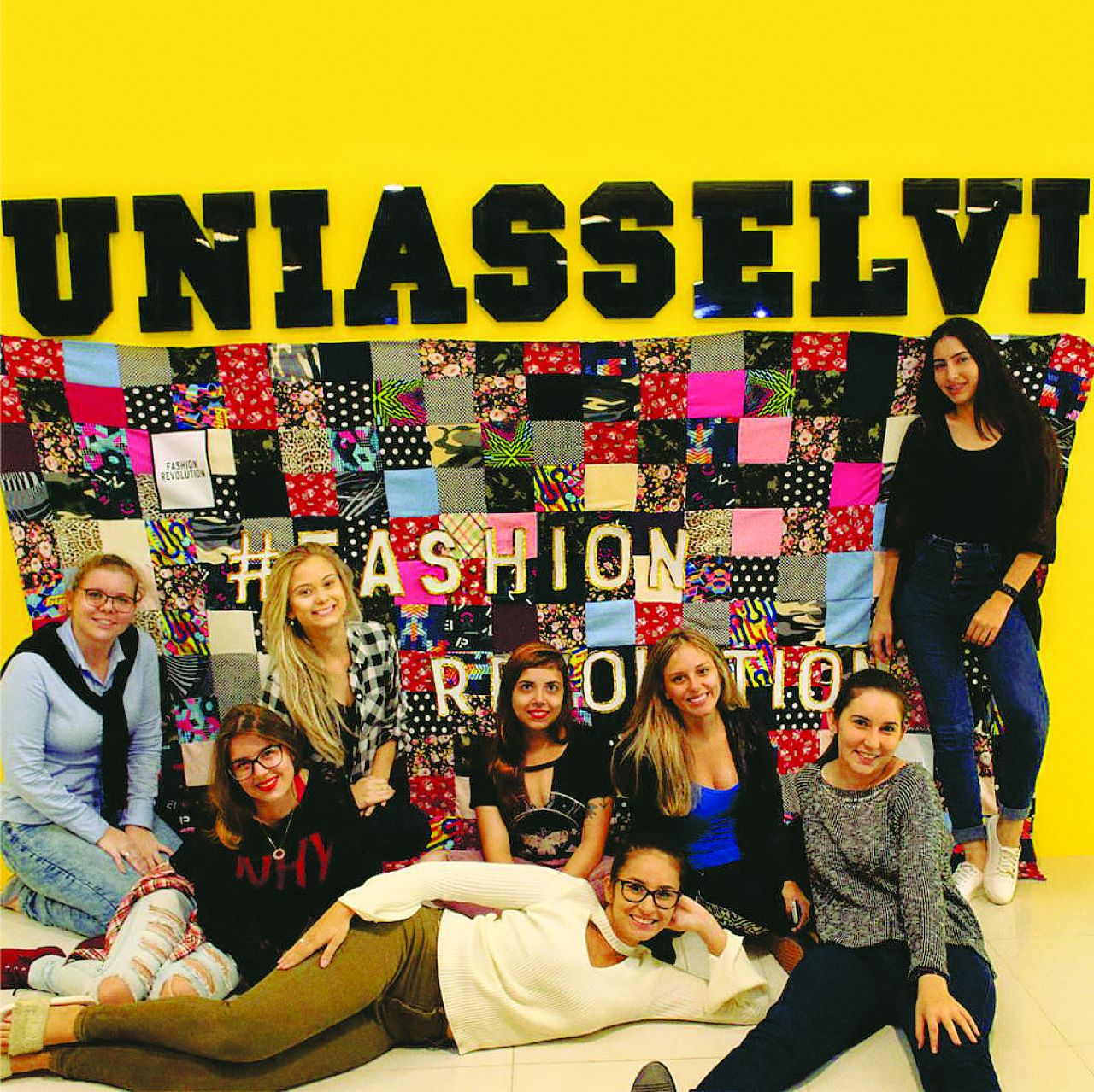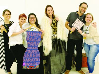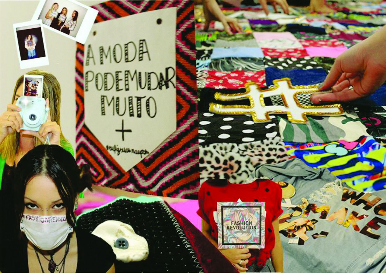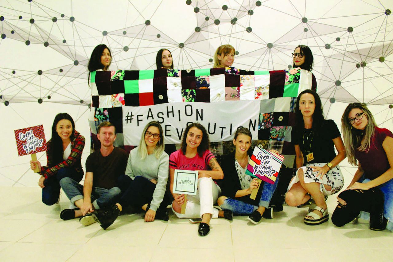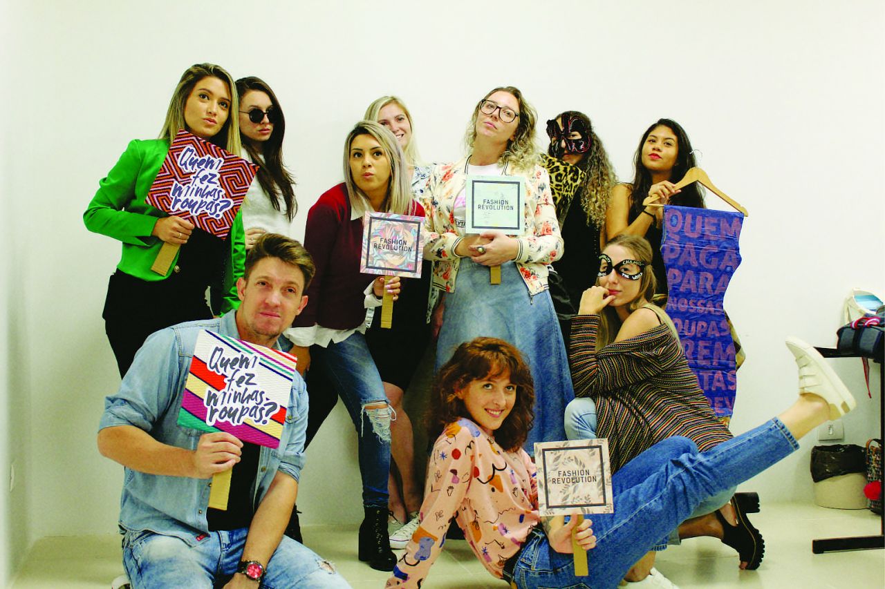 “Assim que foi dada a oportunidade, amamos a ideia de poder participar de um projeto tão lindo e memorável. Foram desenvolvidas 3 bandeiras de retalhos, confeccionadas as placas oficiais do Fashion Revolution e realizada uma sessão de fotos com as turmas da 1ª e 2ª fases de Design de Moda, alunos de outros cursos e professores.