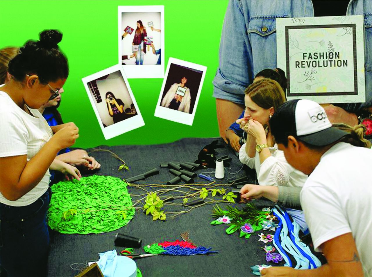 No projeto #FASHIONREVOLUTION 2018 construímos e apresentamos três bandeiras de retalhos feitas com muita criatividade. O cuidado com cada material foi essencial e único, sendo que reutilizamos matérias primas das empresas em que trabalhamos. Este projeto é por uma boa causa, a qual nos faz refletir quando compramos alguma peça, seja de roupa ou acessório. Isso nos torna designers mais preocupados com a procedência do nosso produto, seja ele consumido ou criado.
