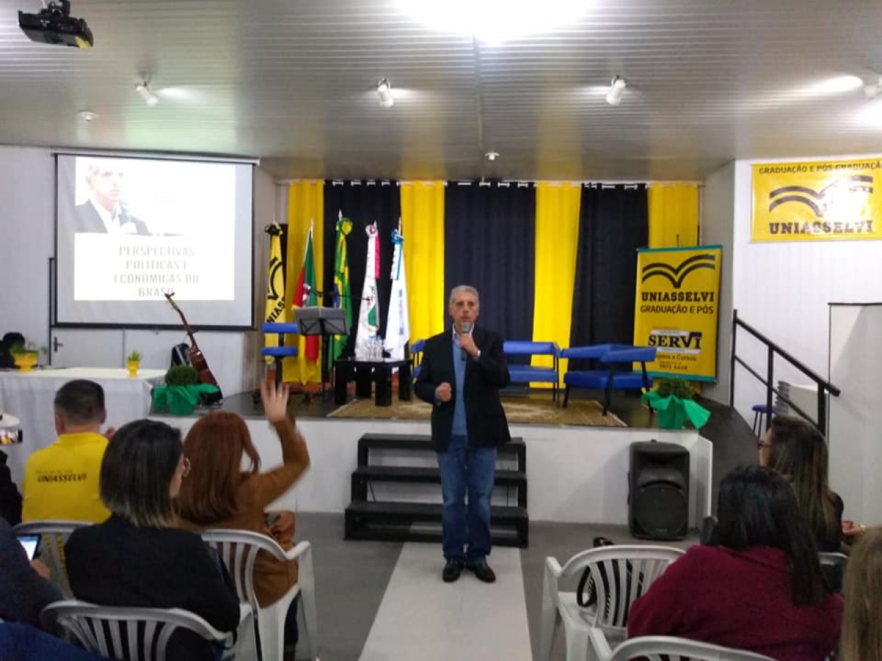 Na última sexta-feira, dia 27 de setembro, às 19h, a UNIASSELVI Polo Camaquã promoveu uma palestra alusiva ao Dia do Administrador, com o tema ‘Perspectivas Políticas e Econômicas do Brasil’. Cerca de 300 pessoas participaram do evento, entre acadêmicos, tutores e comunidade externa.