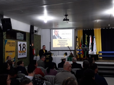 A palestra foi ministrada pelo político José Alberto Fogaça de Medeiros, formado em Direito pela PUC-RS – advogado, professor, político, ex-prefeito de Porto Alegre, ex-deputado estadual e federal e ex-senador.