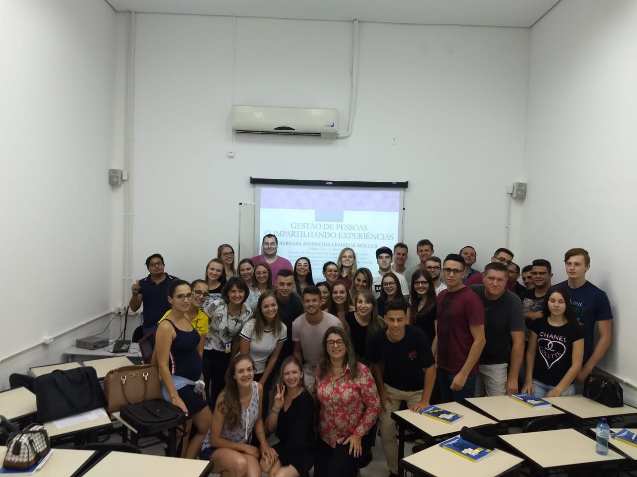 A tutora externa Arlete Longhi Weber, com intuito de aproximar a teoria da prática e estimular os acadêmicos através da troca de experiências envolvendo as disciplinas de Gestão de Pessoas e Psicologia Organizacional e do Trabalho, convidou Bárbara Aparecida Lembeck Holler para ministrar uma palestra para a turma de Administração de 5º semestre, ADG0890, no Polo Indaial Vitória Régia.