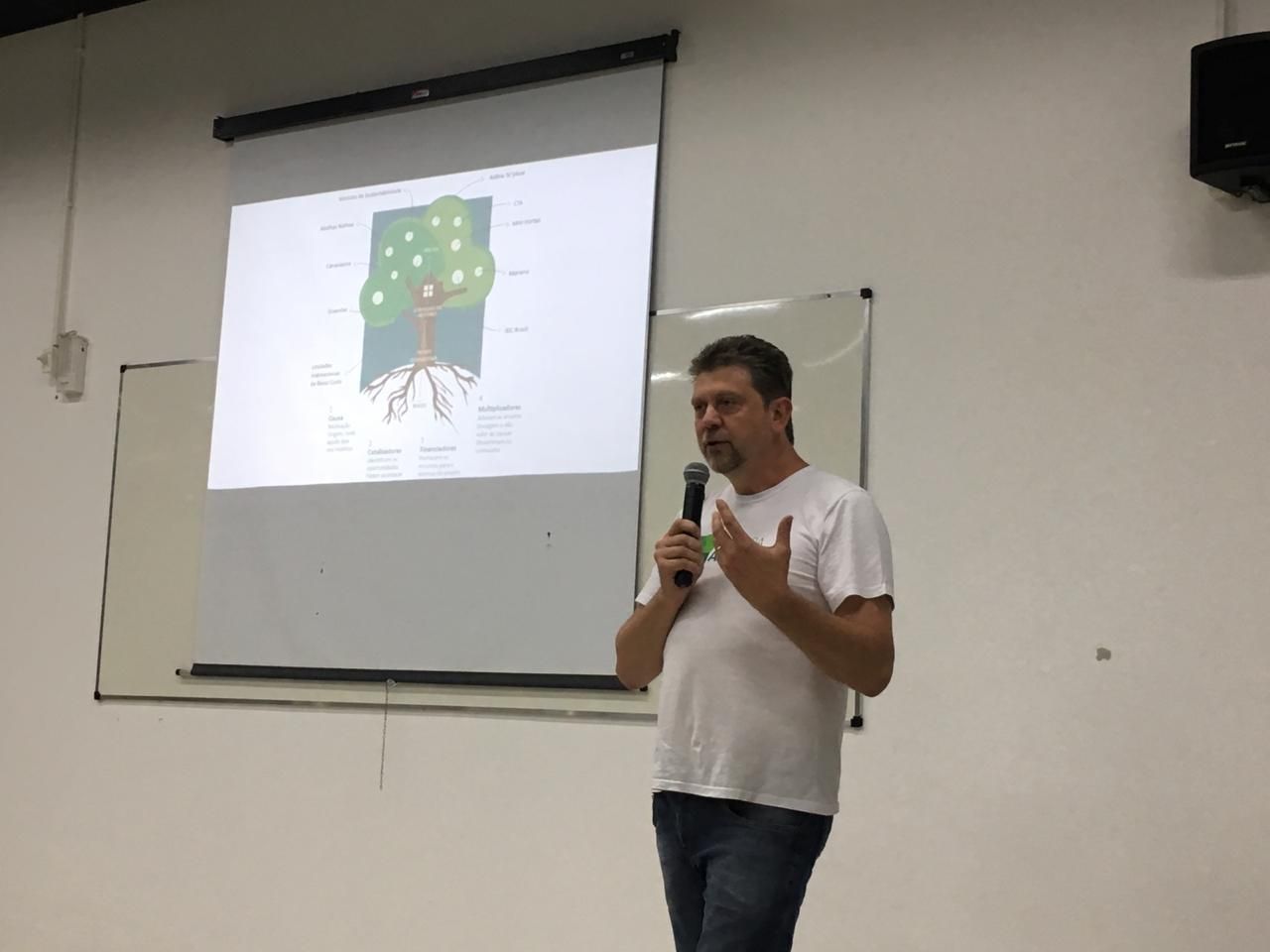 No dia 09 de novembro, o curso de pós-graduação presencial em “Cidades Sustentáveis” promoveu, em parceria com a SOU Digital, a palestra Construção de casas sustentáveis, um desafio possível. Tivemos a honra de contar com a presença do empreendedor Alessander Comandolli, que é formado em gestão empresarial pela Fundação Getúlio Vargas (FGV) e acumula experiência de mais de 20 anos em empresas de tecnologia e desenvolvimento de softwares. Desde 2017, atua como presidente do Instituto Dorvallino Comandolli (IDC), criado para atender famílias em situação de vulnerabilidade social por meio de cursos de capacitação e outras atividades. Visionário, Alessander também é um dos fundadores da Turma da Árvore, projeto que une tecnologia e sustentabilidade para neutralizar as emissões de carbono na atmosfera por meio do plantio de mudas de árvores em todo o Brasil. O trabalho com a Turma da Árvore também inspirou a criação da CTA, uma construtora do grupo que utiliza madeira de impacto social em seus projetos.