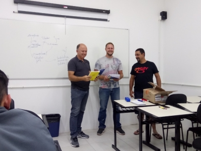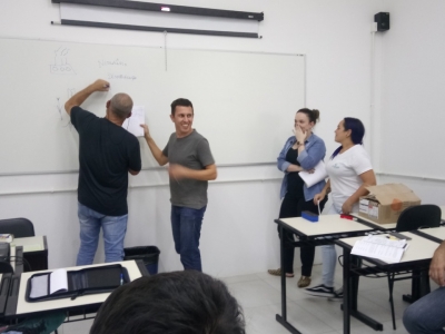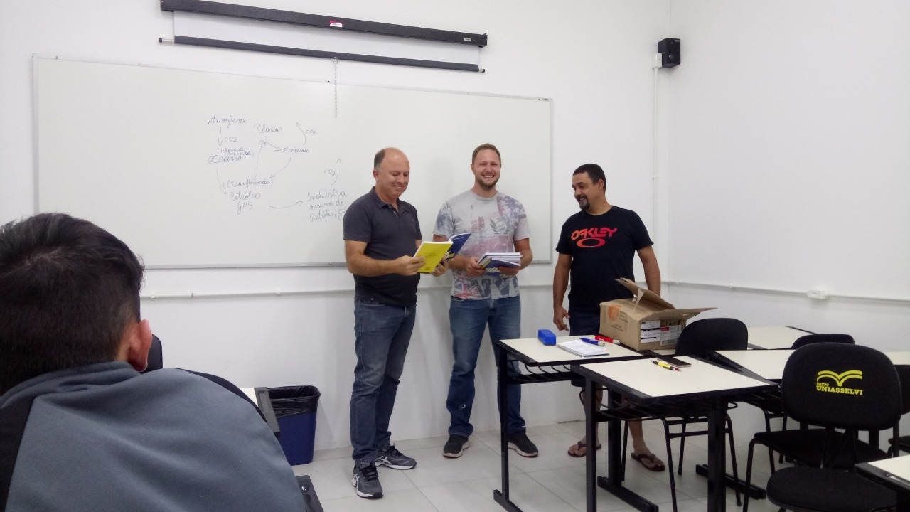Os acadêmicos do curso de Gestão Ambiental da UNIASSELVI Polo Indaial – Vitória Régia realizaram, no dia 16 de maio, sua primeira atividade, no primeiro encontro presencial, acompanhados pelo tutor James Peixer. O objetivo da atividade foi a integração dos alunos e o incentivo ao estudo em coletivo (em grupos), através da discussão e socialização dos temas e do conhecimento de cada um.