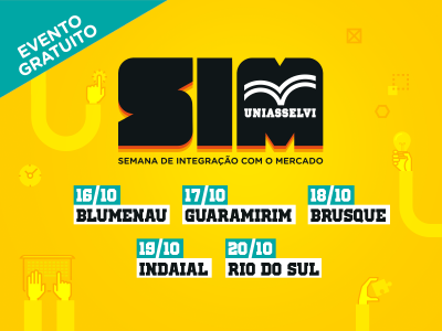 A UNIASSELVI realiza entre os dias 16 e 20 de outubro a Semana de Integração com o Mercado (SIM). Durante cinco dias, unidades da instituição em Santa Catarina receberão o evento. Com entrada gratuita, o SIM contará com feira de profissões, palestras sobre o mercado de trabalho e aulão de preparação para a redação do ENEM, com o Professor Rafael Cunha, do portal Descomplica.
