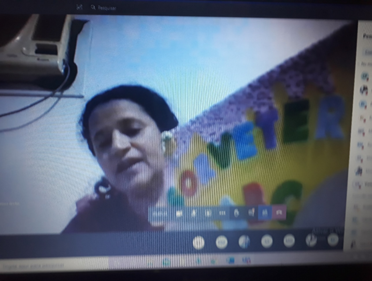 As formas de apresentação virtual foram diversificadas, mas todas as acadêmicas desenvolveram uma apresentação em PPT enviada ao tutor anteriormente à apresentação. Trata-se de uma prática de grande contribuição de compartilhamento de conhecimento e interação entre as acadêmicas, suas colegas de classe e a tutora.