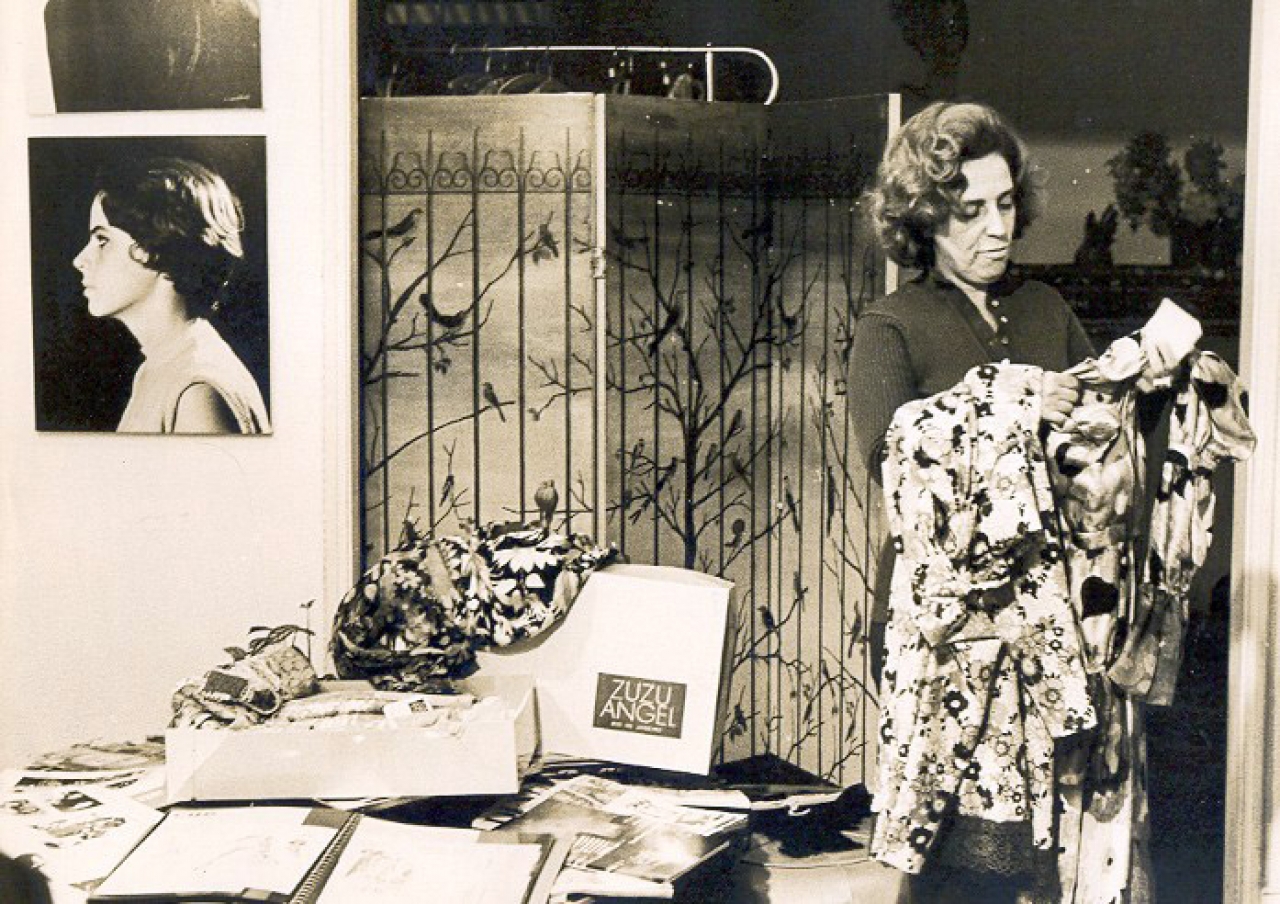 Nascida em 1921, Zuzu Angel foi uma personalidade notória do Brasil, estilista reconhecida nacional e internacionalmente. Em seus desfiles, sempre abordou a alegria e a riqueza de cores da cultura brasileira, misturando temas regionais e do folclore, fazendo muito sucesso no universo da moda de sua época através de sua originalidade.
