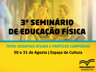 Nos dias 30 e 31 de agosto, a UNIASSELVI Polo Camaquã/RS promoverá o 3º Seminário de Educação Física com o tema “Desafios atuais e práticas corporais”.