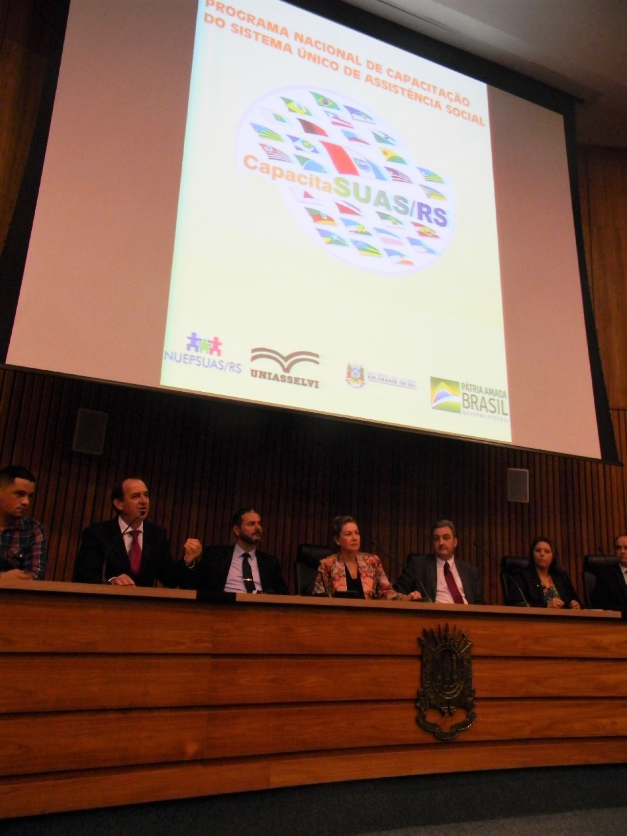 No dia 6 de maio aconteceu a Aula Inaugural do Programa Nacional de Capacitação do SUAS – CapacitaSUAS. O evento ocorreu no Auditório do Ministério Público do Rio Grande do Sul, em Porto Alegre/RS. Na ocasião, também foi aberta a 2ª Edição do Programa CapacitaSUAS no Estado do Rio Grande do Sul, destinado, especialmente, para gestores, trabalhadores do SUAS e conselheiros.
