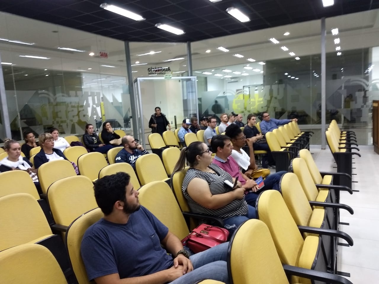 Durante a palestra, os acadêmicos e tutores expuseram suas dúvidas, todas sanadas pela palestrante.