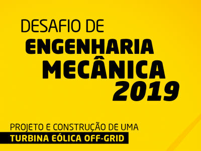 A UNIASSELVI Timbó/SC está promovendo o Desafio de Engenharia Mecânica 2019, destinado a todos os acadêmicos de Engenharia Mecânica da unidade. Os acadêmicos deverão projetar e construir uma turbina eólica off-grid, de acordo com as características exigidas no edital.