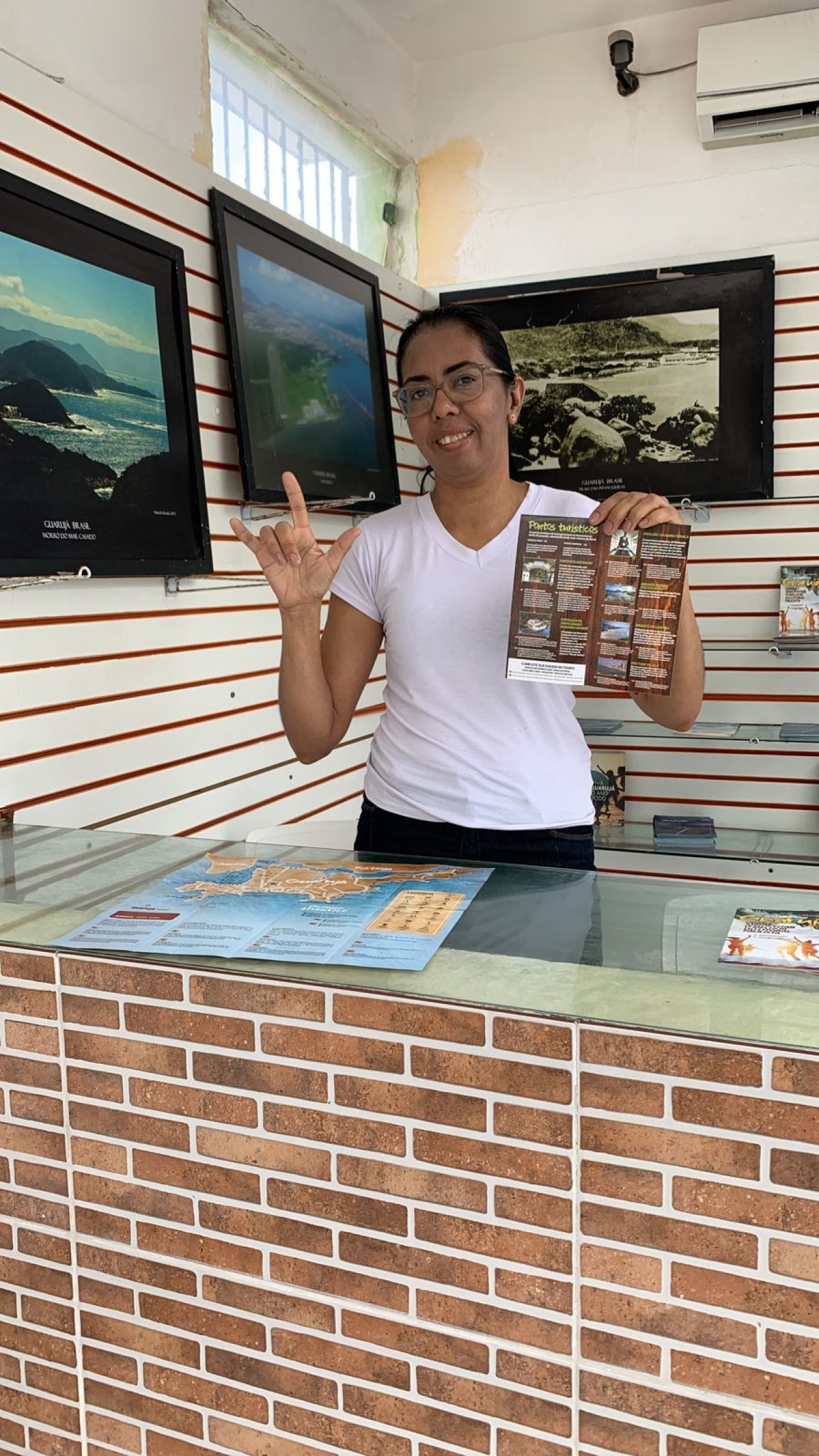 Aluna da UNIASSELVI Guarujá presta atendimento em Libras aos turistas