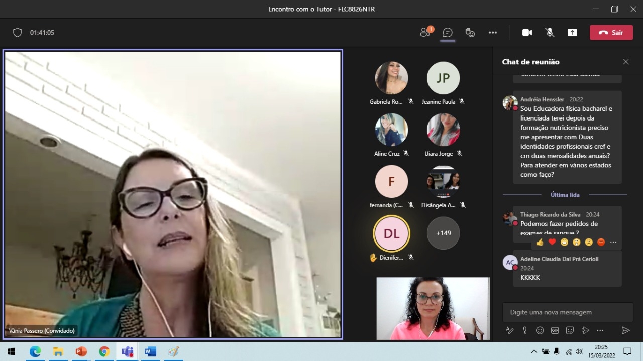 A convite da Tutora Juliana Malkowsk, da disciplina Introdução à Nutrição, do curso de Nutrição, da UNIASSELVI, a Presidente do Conselho Regional de Nutricionistas de Santa Catarina (CRN 10), Vania Passero participou da palestra sobre Código de Ética e Conduta do Profissional Nutricionista. O encontro online, aconteceu na última terça-feira (15), por meio da plataforma Microsoft Teams, e foi acompanhado por 180 alunos.